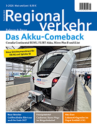 Hier können Sie eine Leseprobe der aktuellen Regionalverkehr-Ausgabe als PDF herunterladen. Regionalverkehr 2-2026 (ca. 2 MB)