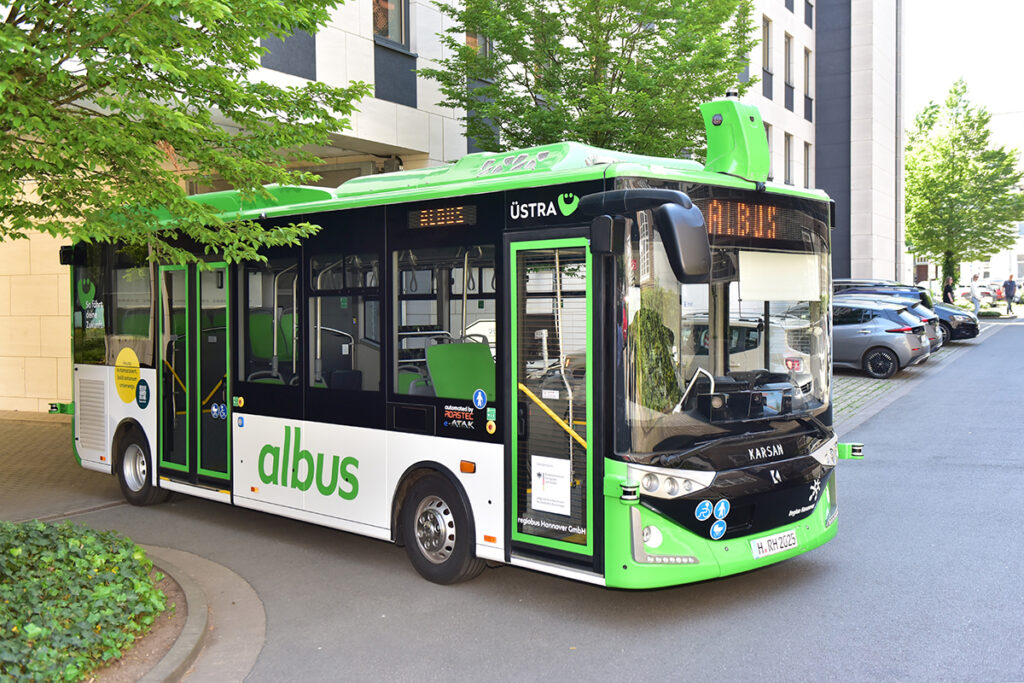 Das zunächst einzusetzende Fahrzeug ist bekannt. Es handelt sich um einen vollelektrischen Midibus Karsan e-Atak mit E-Antriebskomponenten von BMW und einer Reichweite bis 300 km. Der Region Hannover ist der Bus für die mehrmonatige Testphase vom Projektpartner Adastec kostenlos überlassen. Adastec rüstete den 22-sitzigen 8-m-Wagen mit Kameras, Sensoren, Hard- und Software für vollautomatisierten Betrieb aus. Teuer hingegen werden beispielsweise begleitende Gutachten und Umfragen: 2,2 Mio. sind dafür angesetzt. Das Bundesverkehrsministerium (BMV) fördert albus mit weiteren rund 3,7 Mio. Euro. Das Projekt läuft nach Verlängerung nun bis Mitte 2027, Betreiber ist die Regiobus Hannover GmbH. Bus, Technik und Konzept sind nicht völlig neu, in Stavanger (Norwegen) ist seit drei Jahren ein baugleiches Fahrzeug autonom unterwegs, weitere wurden auf verschiedenen Messen gezeigt.