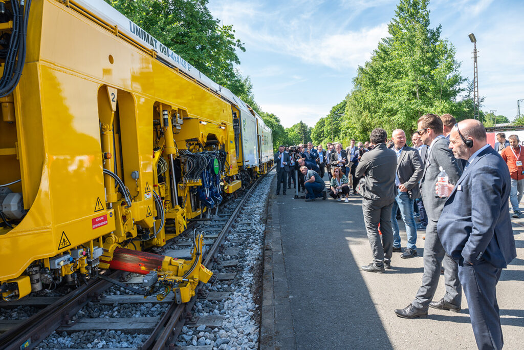 Im Rahmen der Live-Demonstration auf der iaf wurde der autonome Einsatz des Unimat 09-4×4/4S E³ der Firma Eiffage Infra-Rail GmbH einem breiten Publikum vorgeführt. Die Maschine stopfte vollautomatisch eine Weiche – ohne Personal in der Stopfkabine. Sascha Frölich, technischer Leiter bei Eiffage Infra-Rail GmbH, betonte den Nutzen der Automatisierung: „Schon heute spüren wir, wie die gesamte Baubranche, die Auswirkungen des Fachkräftemangels. Indem unsere Maschinen uns gezielt unterstützen, schaffen wir gemeinsam die Voraussetzungen, um die Anforderungen unserer Auftraggeber weiterhin zuverlässig und effizient zu erfüllen.“